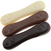 Elegant tasters of São Tomé island 70% dark chocolate, caramel noted milk chocolate, or creamy white chocolate